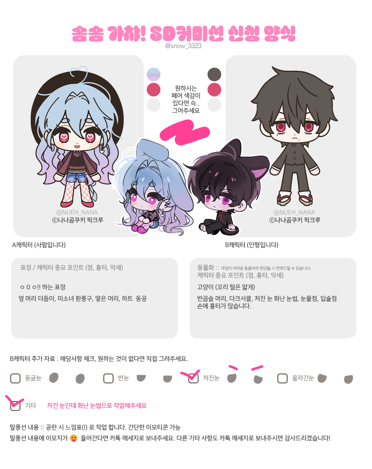 ❄ 솜솜/설아(@snow_3323)의 몽글몽글 말랑 SD 커미션! 문의와 신청은 오픈카톡으로 부탁드립니다.